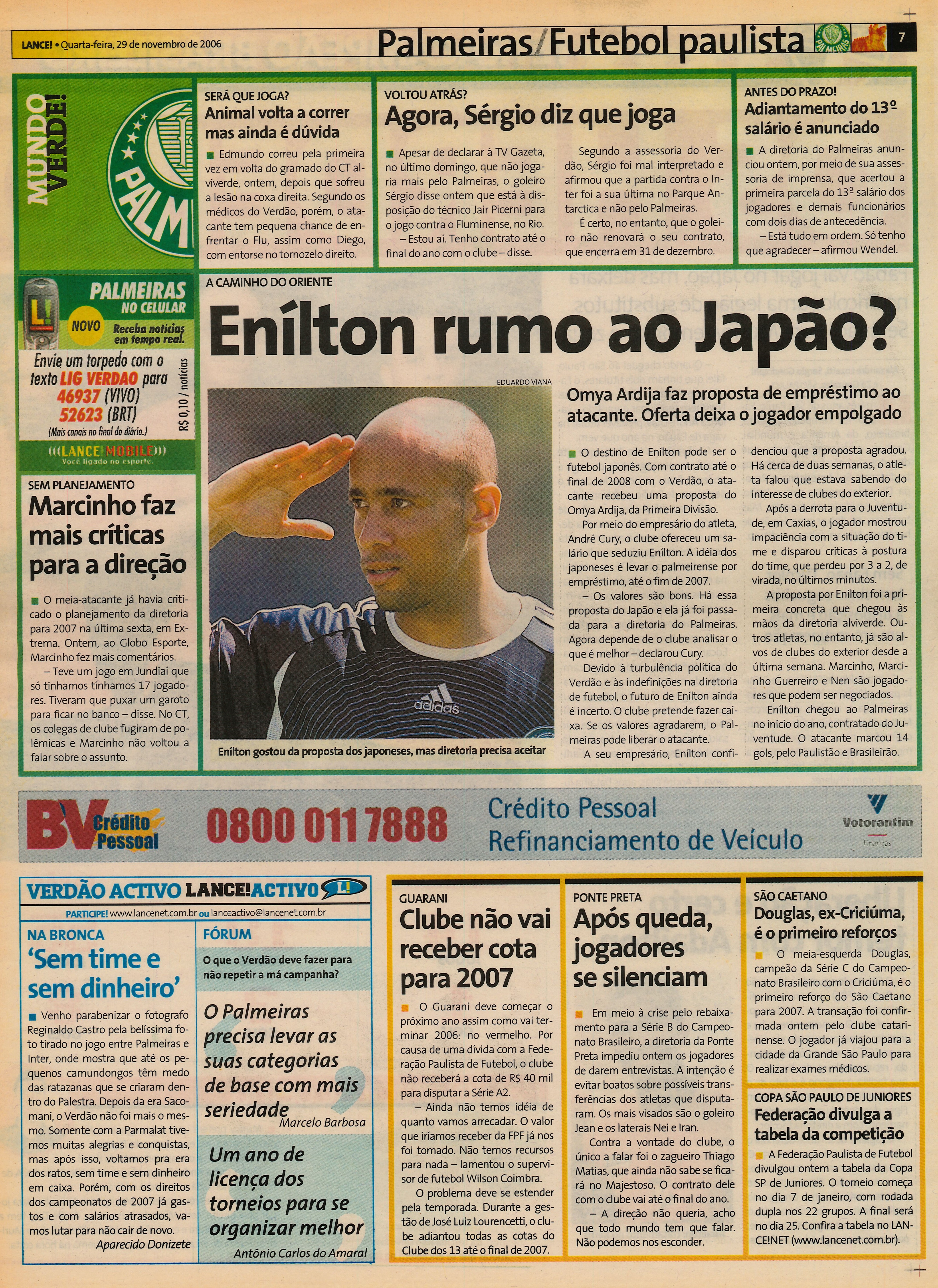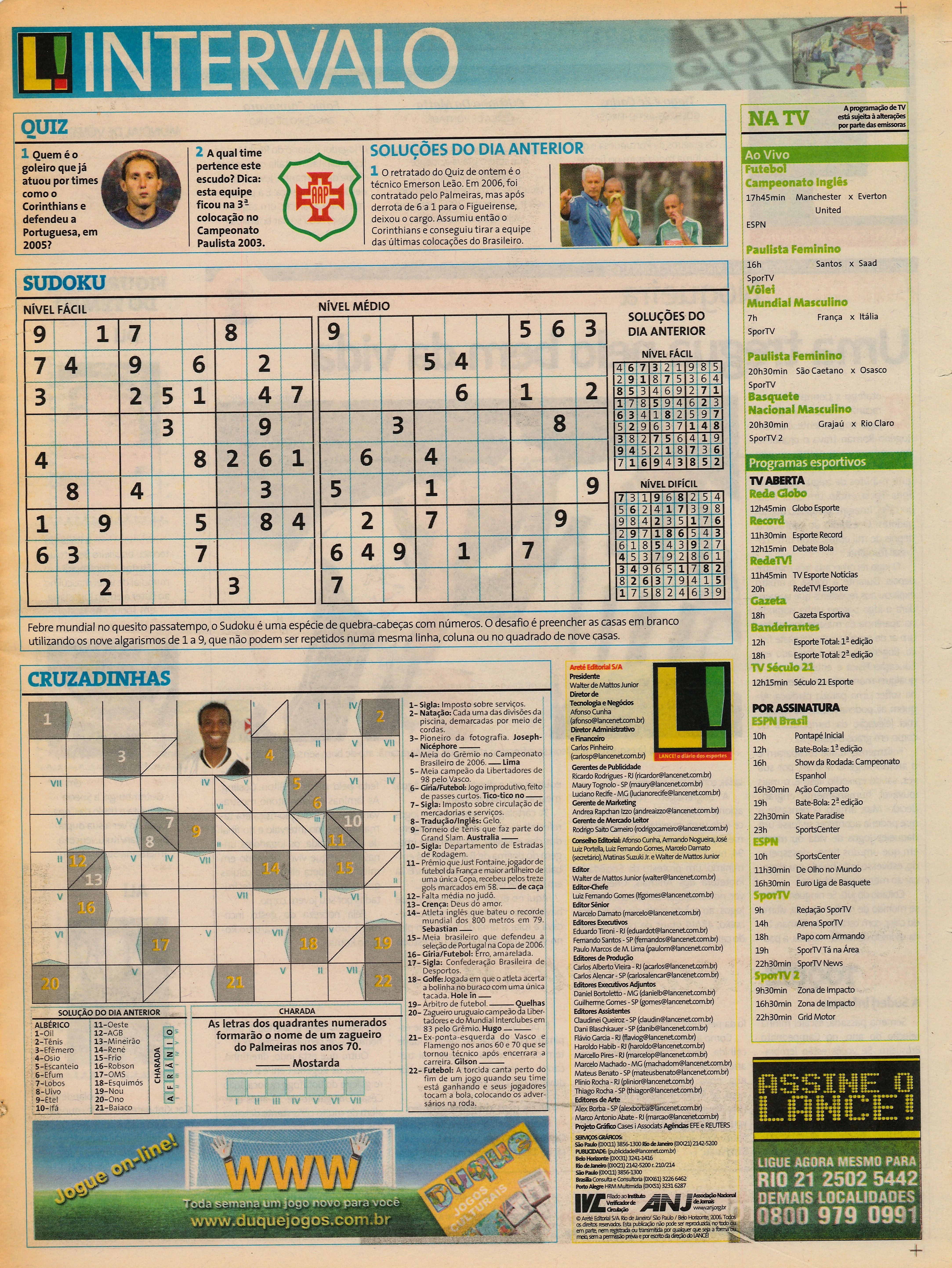 Jornal Lance! – Edição 3304 – 29/11/2006