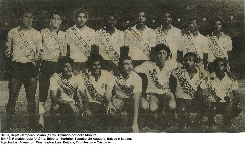 Pôster do Vitória (Salvador, BA), na temporada de 1979, marcando a conquista do primeiro turno do estadual. Acervo do pesquisador Jefferson de Lima Sobrinho (Londrina, PR). Publicado pela Revista Placar.