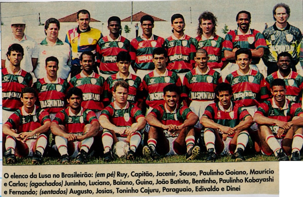 Portuguesa (São Paulo, SP), no ano de 1993, imagem do acervo do pesquisador Pedro Nunes (Feira de Santana, BA), com o apoio do pesquisador José Luís Maciel (Sapucaia do Sul. RS). Foto publicada no Guia do Campeonato Brasileiro de 1993.
