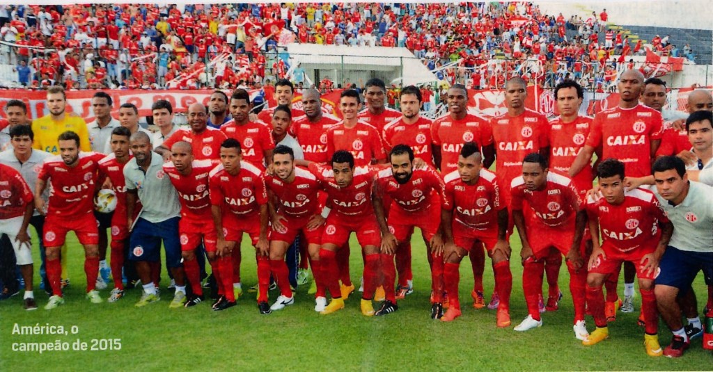 Pôster do América (Natal, RN), na conquista do título estadual de 2015. Acervo do pesquisador Pedro Nunes (Feira de Santana, BA). Publicado pela Revista Placar.